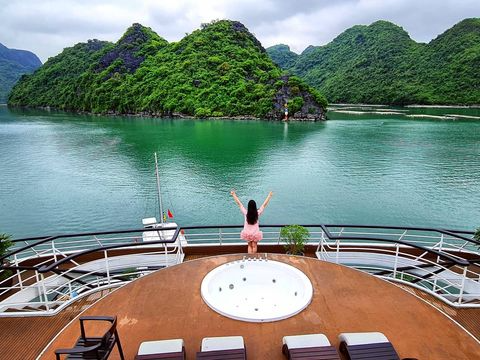 Bạn có đang tưởng tượng ngắm vịnh lúc hoàng hôn buông xuống trên boong tàu hoặc ban công tại các phòng mở ra biển nó lãng mạn như nào chưa? Khi mà trên tay là một ly rượu vang cùng người thương bên cạnh và nắm tay nhau nhìn sự chuyển đổi của đất trời như chứng minh cho tình yêu của chính mình.